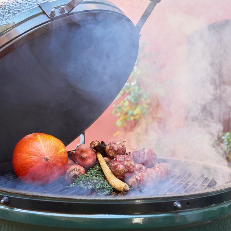 »Im Endeffekt ist es total simpel«, verrät er sein Geheimnis. »Das ganze Gemüse wird am Vortag mit Salz abgerieben und kommt dann ins Green Egg, so wie es ist, mit einer richtigen Salzkruste drauf. Kein Smoker, kein Problem: Ein bisschen Salz auf ein Blech, das Gemüse drauf und in den Ofen schieben. »Vernünftiges Gemüse vorausgesetzt«, gibt Kellerbauer mit auf den Weg. »Weil man da nicht mehr viel rumfummelt. Das ist wirklich pur.«