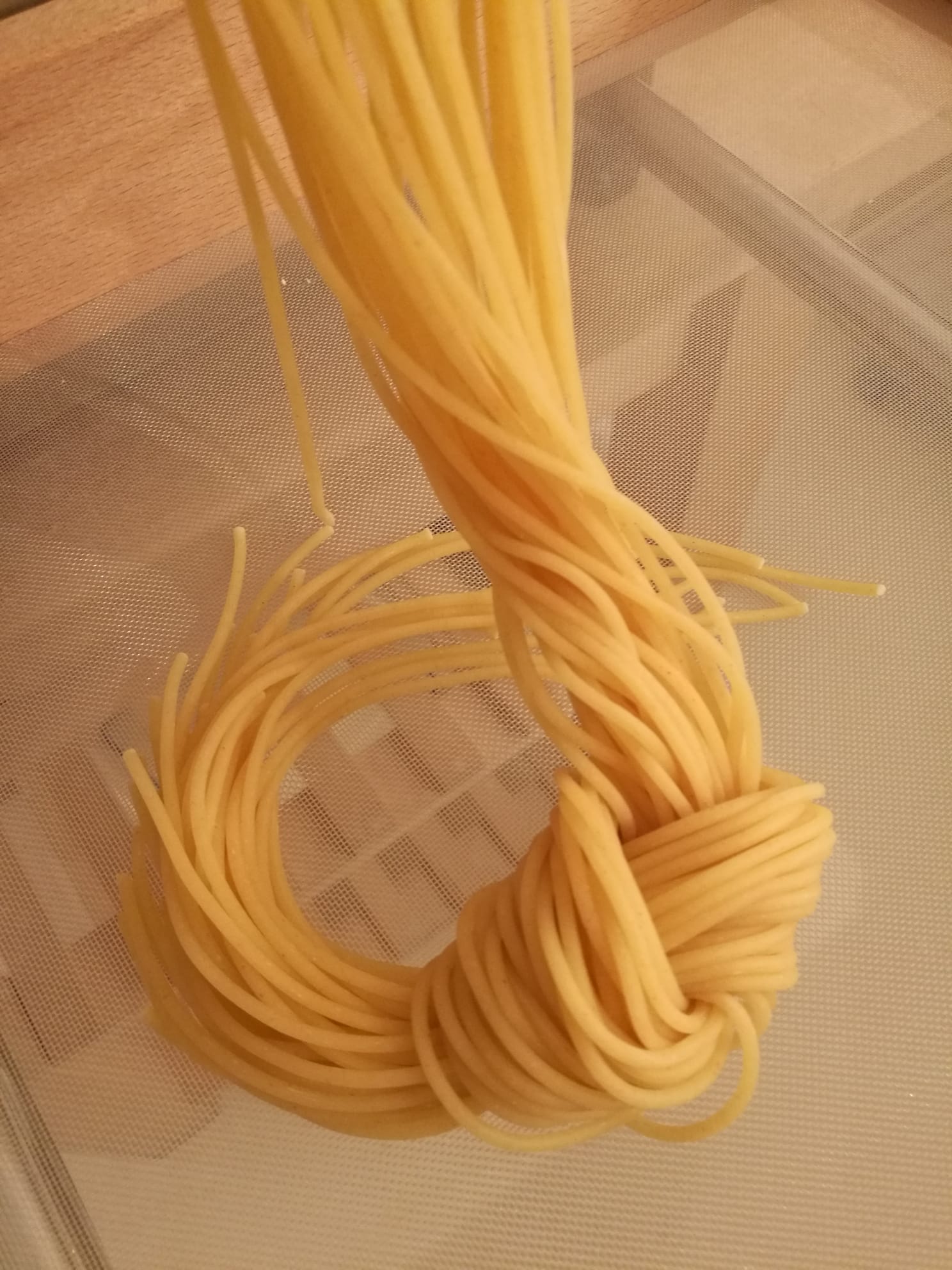 Die Rezepte für die Nudelteige wie für die köstlichen Rezepte, die Susanne Wichary ihren Kunden passend zu den gekauften Nudeln in die Hand drückt, findet sie in Kochbüchern oder im Internet. »Natürlich wird jedes Rezept, das ich herausgebe vorher von mir ausprobiert«, versichert die Nudelmacherin. Ihr absolutes Lieblingsnudelrezept? »Die klassische Spaghetti, ganz klar«, sagt sie.